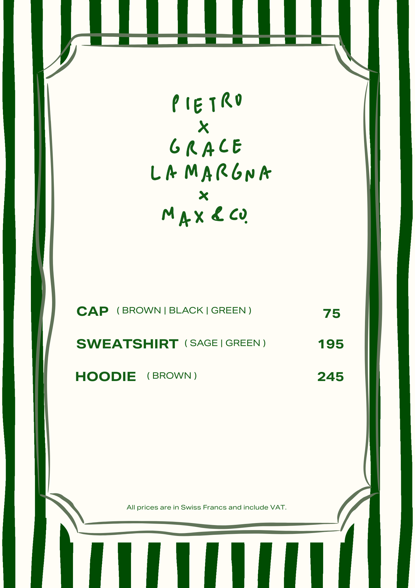 Siamo entusiasti di presentare la nostra esclusiva Capsule Collection, realizzata in collaborazione con il rinomato artista Pietro Terzini. La collezione Pietro Terzini x GRACE x Max&Co. unisce perfettamente arte contemporanea e moda. La capsule comprende felpe, hoodie e cappellini con la scritta iconica: "ARE YOU IN LOVE? NO, I'M IN ST. MORITZ